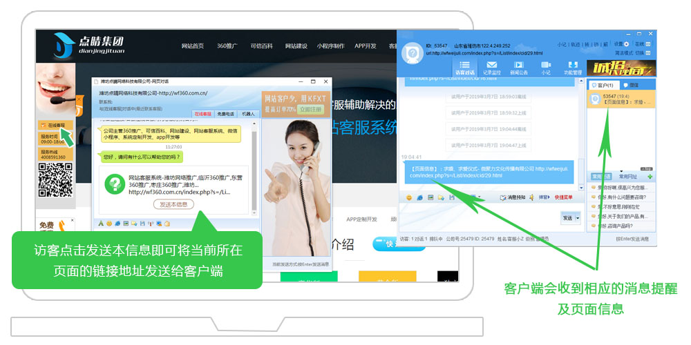 將當(dāng)前所在頁面網(wǎng)址推送給客戶端,使溝通更加的直觀清晰。
